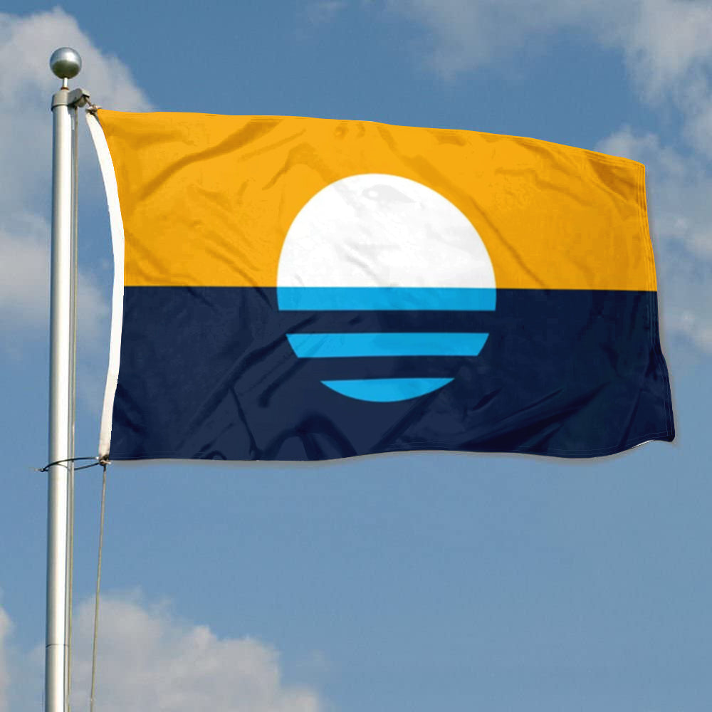 - This is Milwaukee’s "People's Flag" (voted by citizens in 2016), with golden (brewing history), dark blue (Lake Michigan), white (unity) + blue stripes (three rivers/three founding towns) in a sunrise pattern, symbolizing urban rebirth and diversity. It carries Wisconsin’s lake city vibrant vibe, ideal for fans of American Midwest urban rebirth styles, creating a bright urban atmosphere.