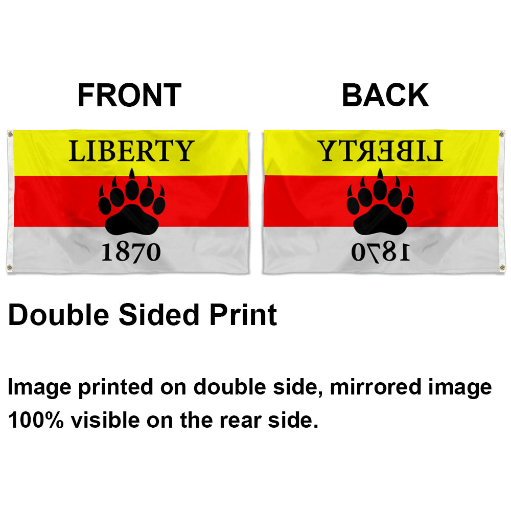 - Features yellow-red-white stripes, "LIBERTY" text, bear paw emblem, and "1870" year—embodying the spirit of freedom and historical symbolism, ideal for man cave decor with a retro ideological vibe.