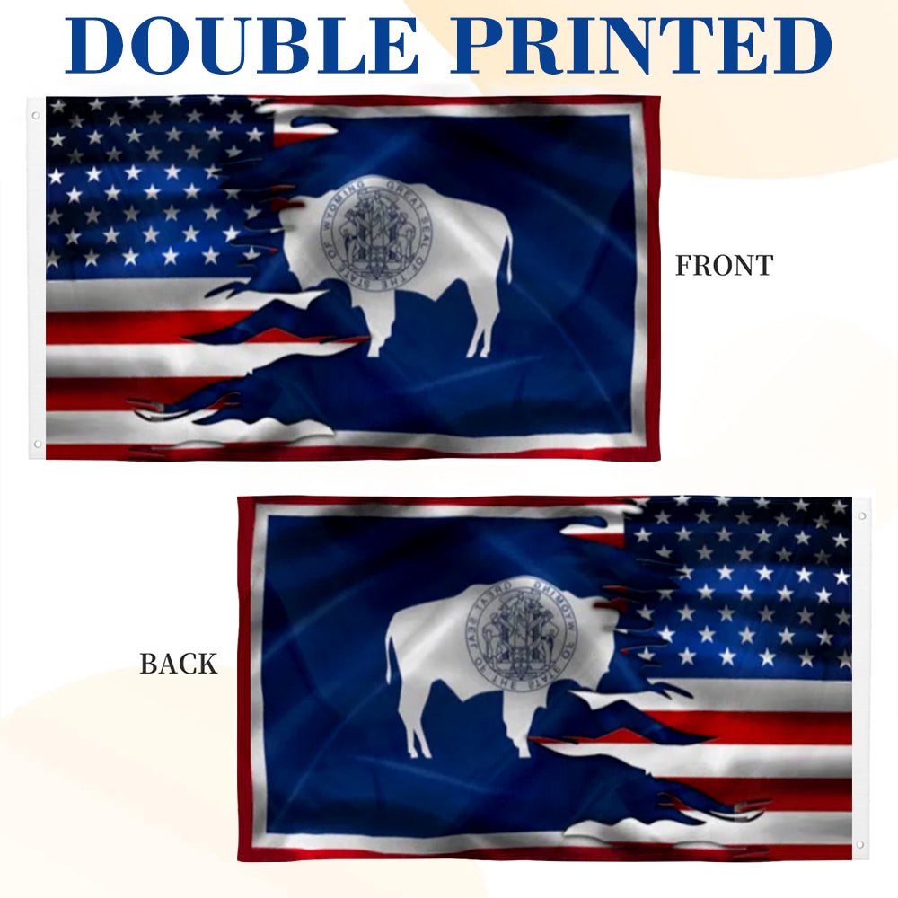 - Features authentic elements of both Wyoming state flag and US national flag, perfect for showcasing state pride and patriotic spirit, appealing to American culture enthusiasts.